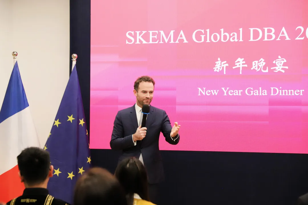 新一届DBA学员代表牛绍函表达了加入SKEMA大家庭的憧憬。他表示,自己是“带着具体的商业挑战而来”,渴望在SKEMA DBA这个国际化的高端学术平台上,通过与顶尖教授和优秀同窗的深度碰撞,找到创新的解决方案,实现个人与事业的突破性成长。