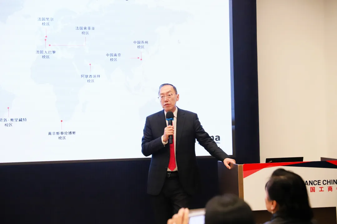 中国法国工商会常务副会长Fabien Pacory在发言中,特别感谢了法商会的协助,以及Linder教授、窦教授的一直以来的全方位支持。他向大家解读了“SKEMA”校名所蕴含的深意——K(Knowledge)、E(Economy)、M(Management),即知识经济管理,认为这精准地定义了当今时代商业领袖的核心使命。