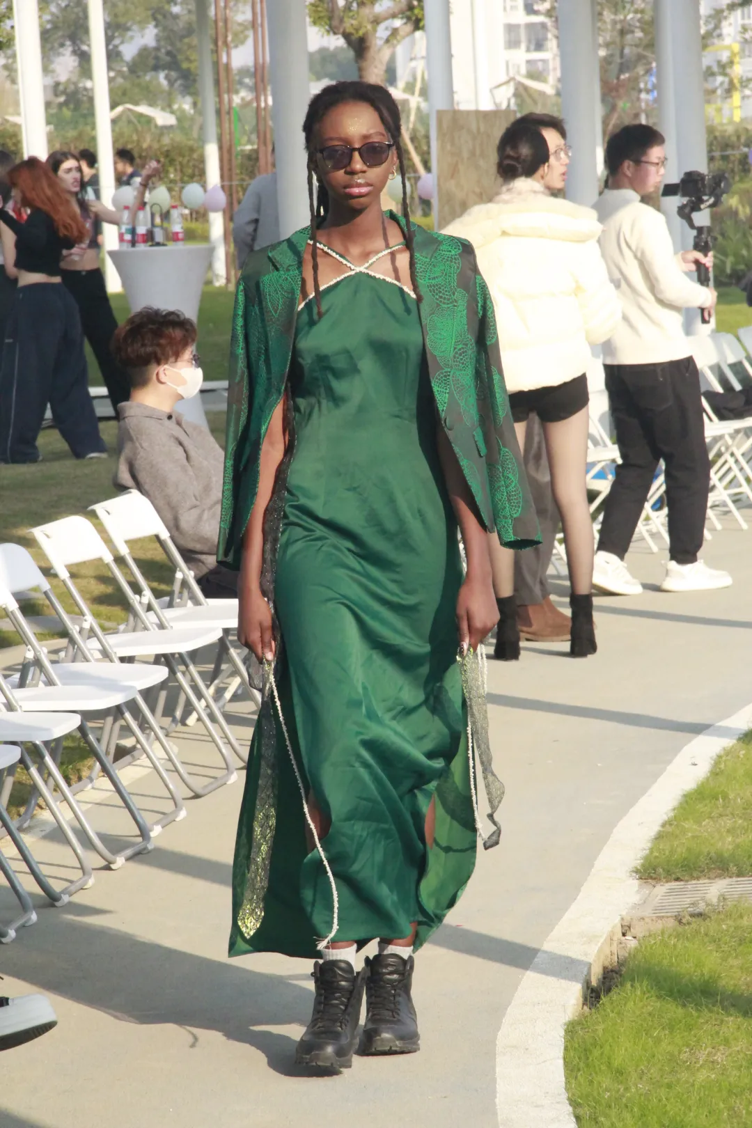 能够参加这次服装秀,我非常激动!这是我第一次当模特,当然也是第一次和外籍同学一起走秀。