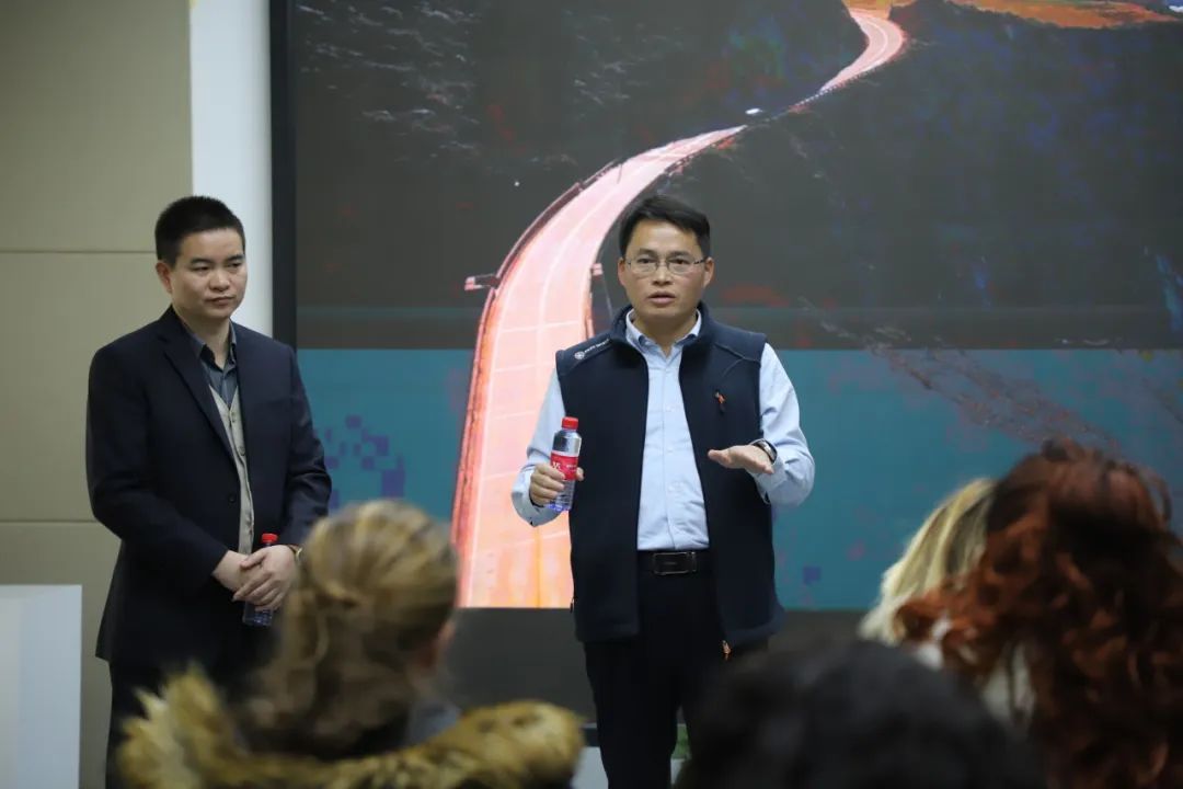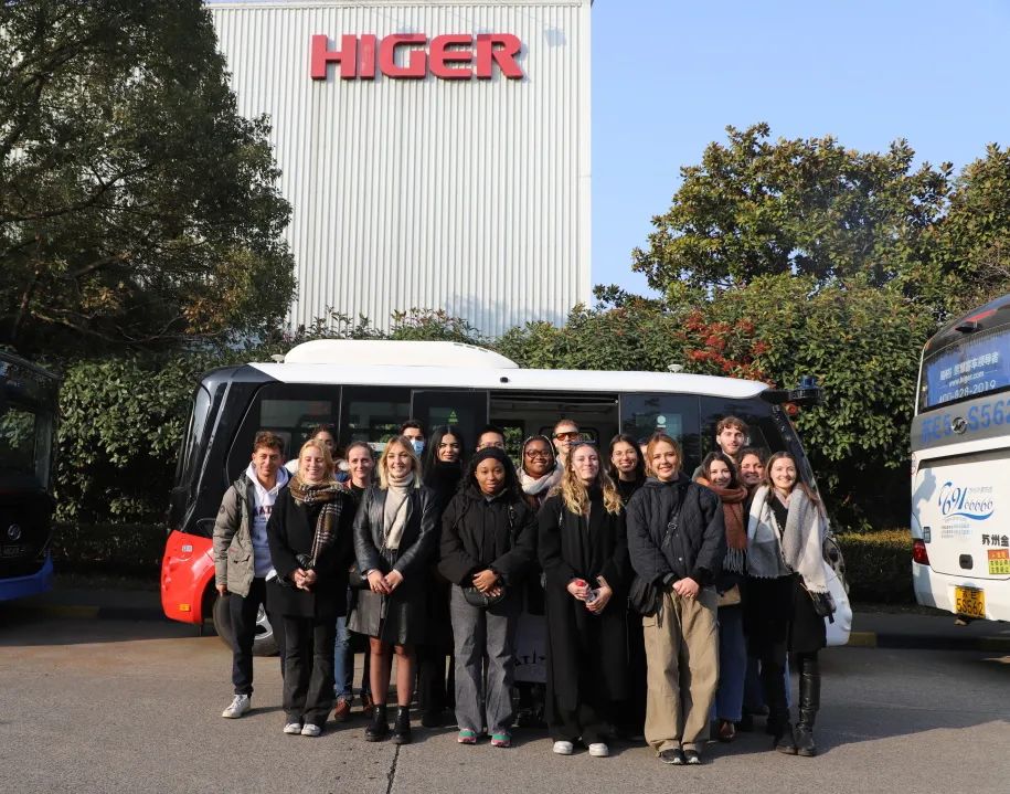 在参观过程中,海格客车的夏国林经理(非洲区大区经理)与徐智慧经理(非洲区市场部经理)为同学们讲解海格客车的发展历程、文化价值观、企业技术研发以及未来智慧交通生活构想,亲切解答同学们的疑问,帮助来自世界各地的同学们更好地了解中国汽车行业。