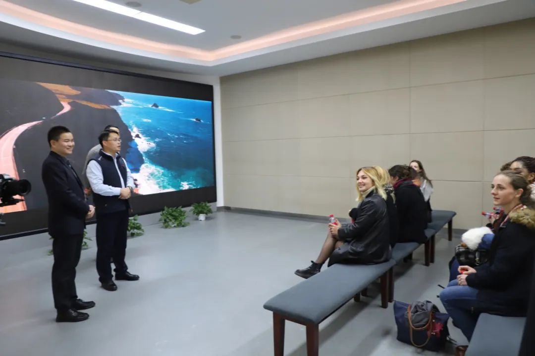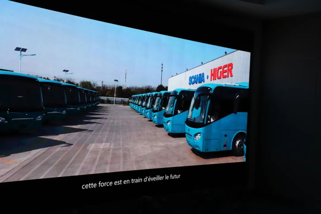 而后,同学们又在放映厅中观看了海格客车法语版的宣传短片,了解了海格客车的发展历程、发展规模和获得的成就等内容。