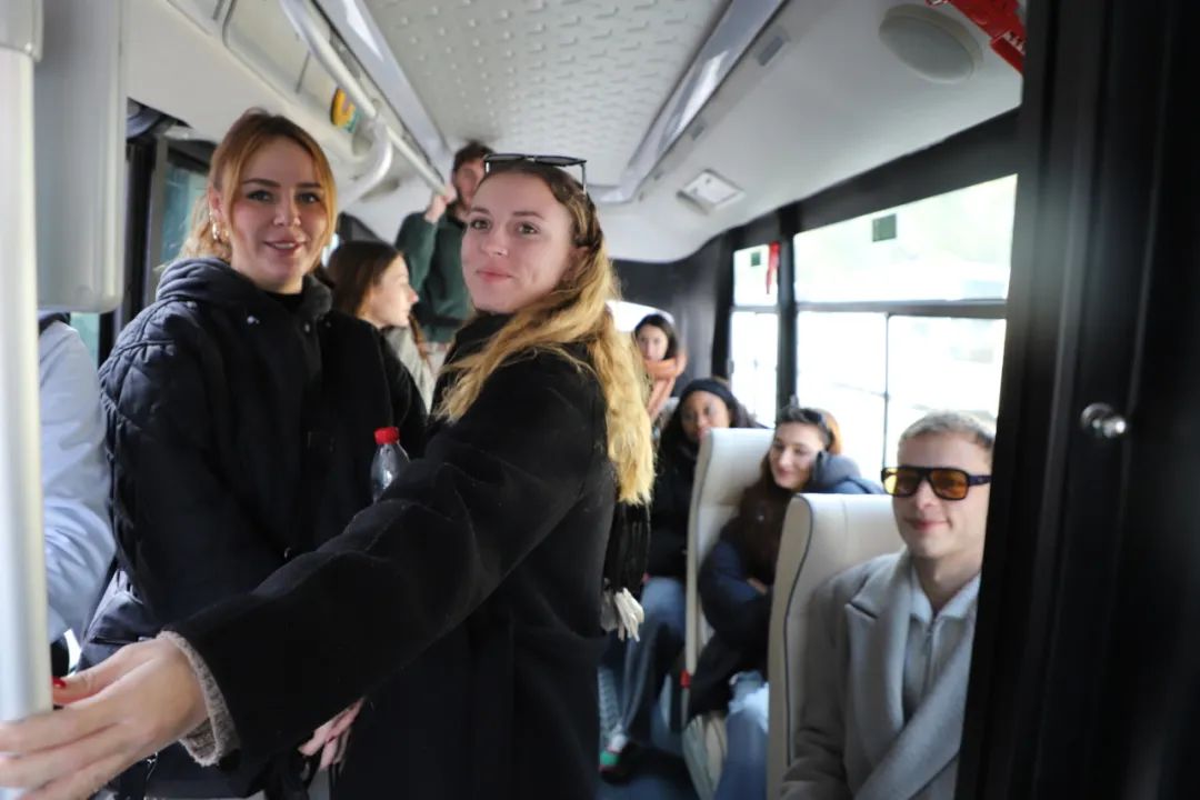 最激动的无人驾驶技术体验来啦!同学们依次登上一辆看似平常,实则暗藏玄机的巴士。