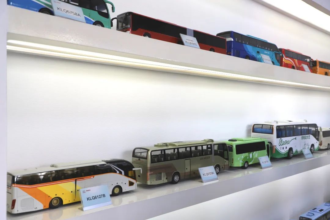 同学们的第一站是海格客车展厅。展厅正中有序摆放着不同造型、功能、米段的格式客车模型,这是海格客车生产的部分型号。