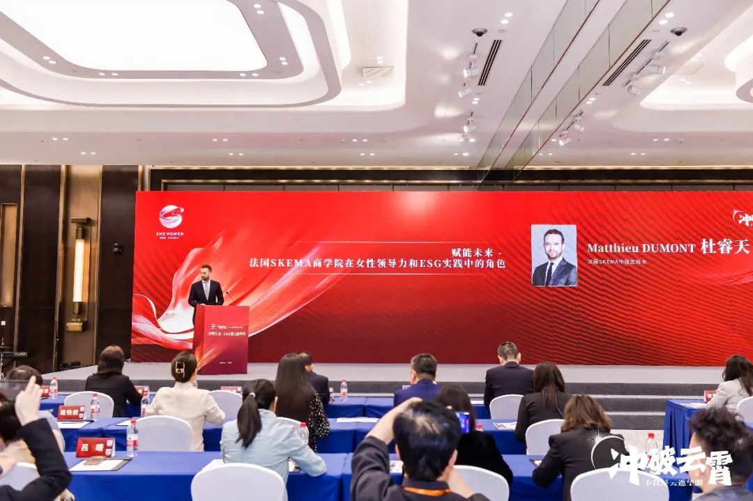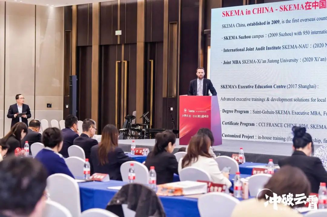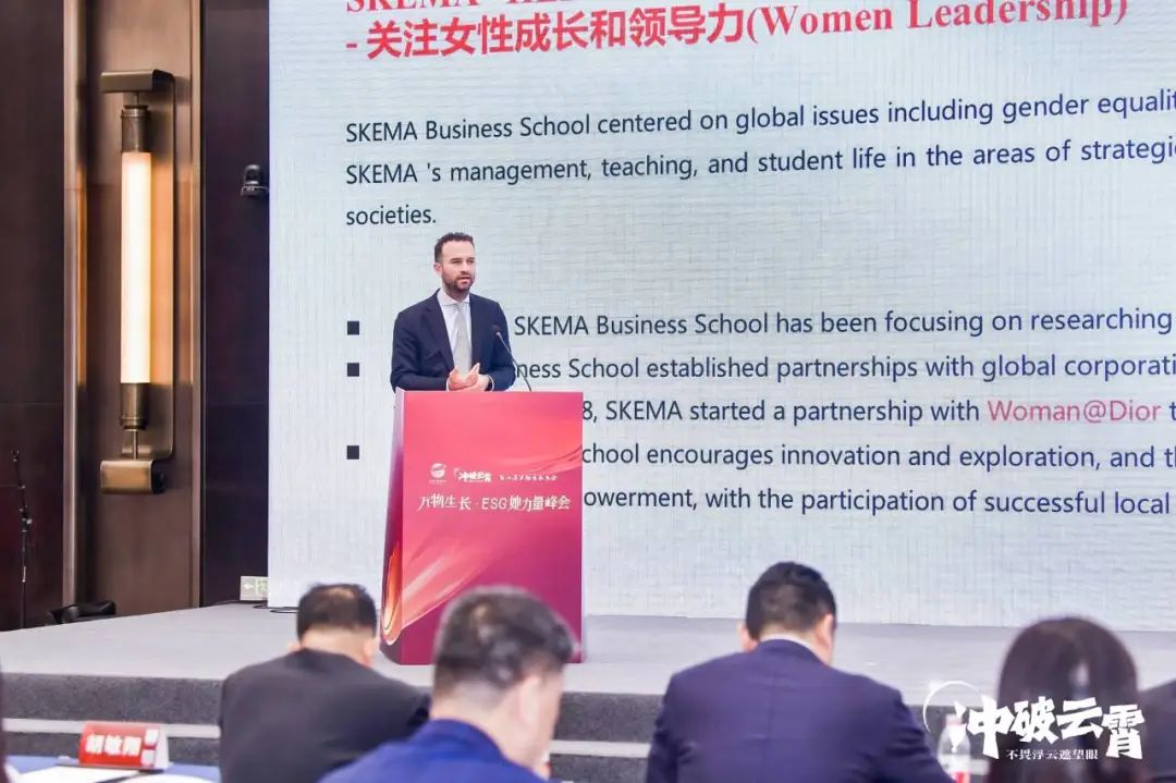 在此次峰会上,SKEMA商学院中国区校长杜睿天先生受邀做了有关“赋能未来—法国SKEMA商学院在女性领导力和ESG实践中的角色”的演讲,SKEMA商学院高管教育总监朱天麟先生担任翻译。
