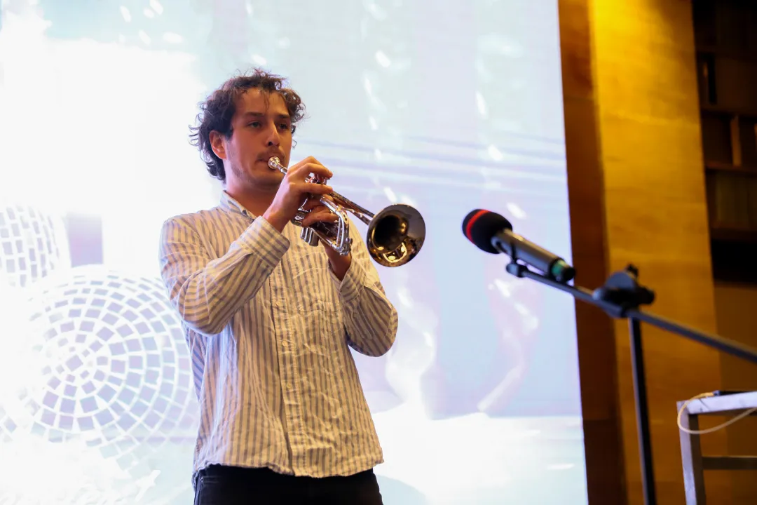 当学生歌手伴着小号奏鸣来到舞台中央