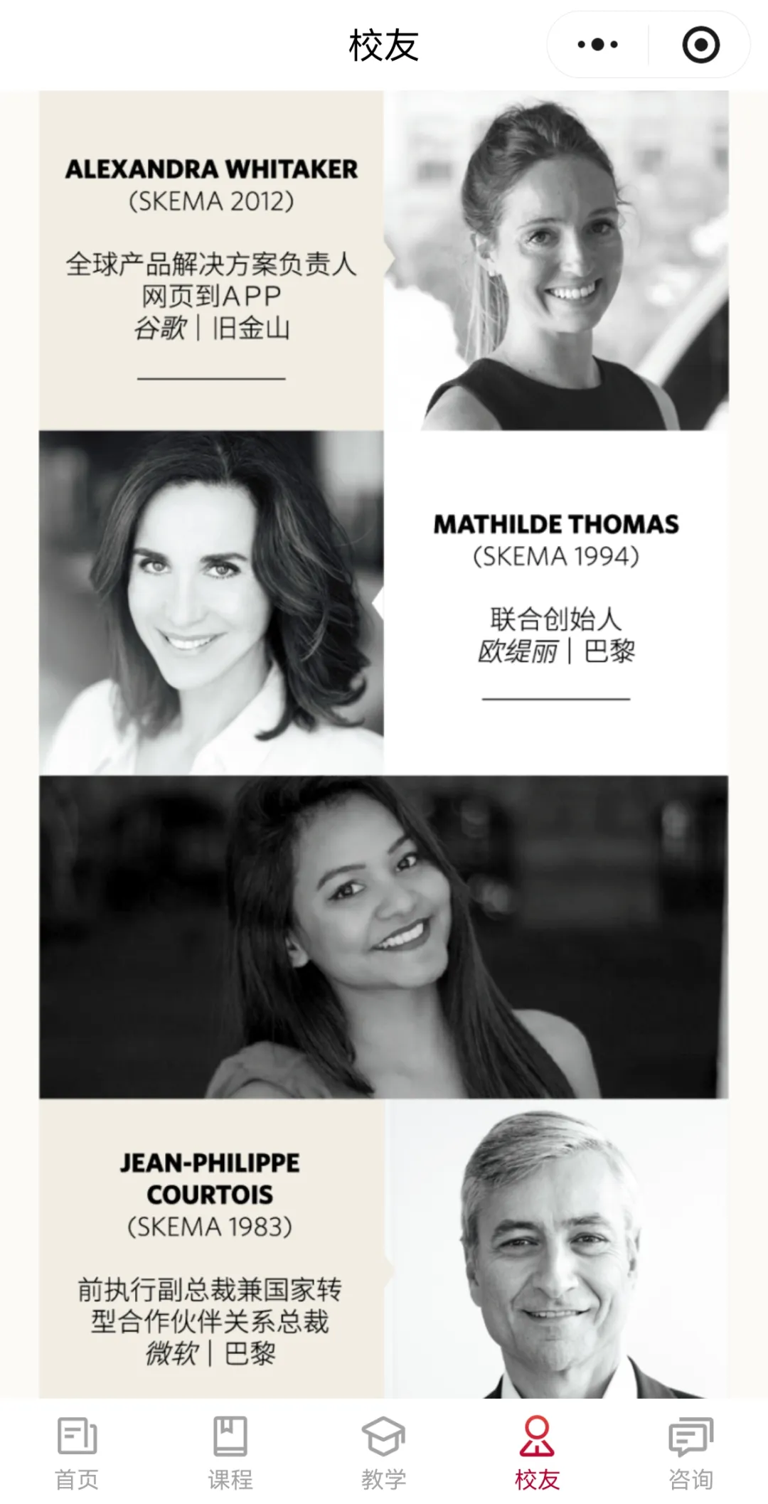点击进入小程序【校友】板块