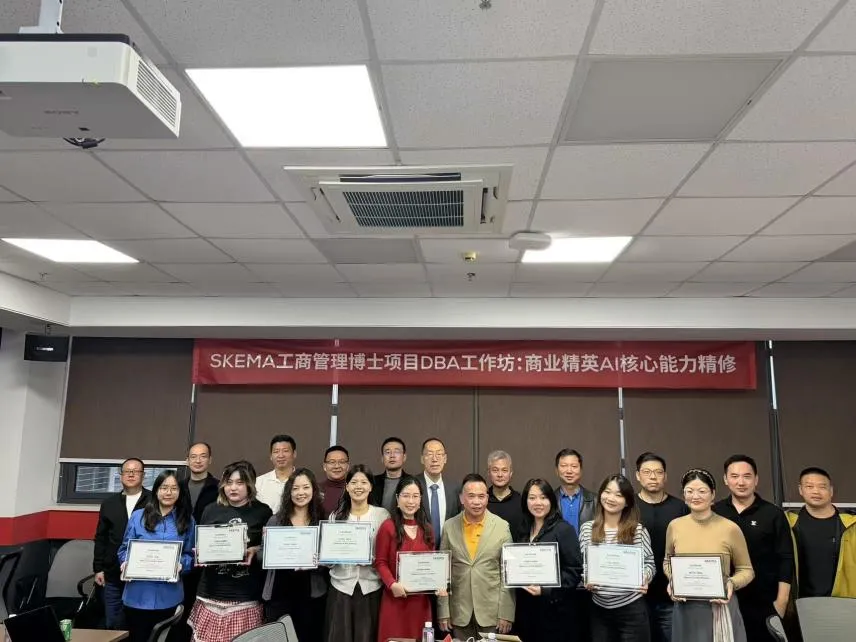活动尾声,完成全天学习的企业高管学员获得了SKEMA DBA项目颁发的参会证书。