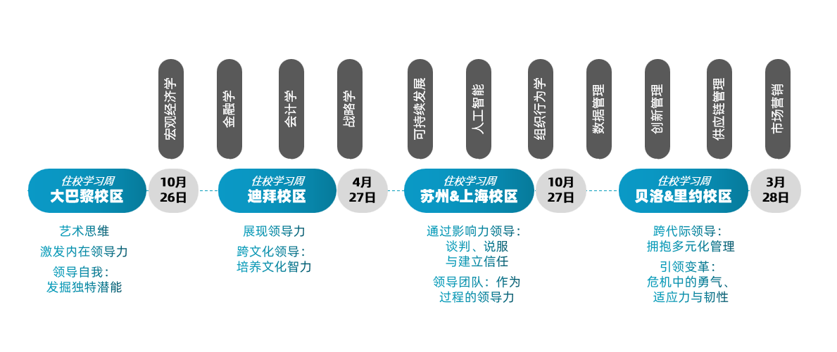 SKEMA全球EMBA项目采用线上线下混合教学模式。项目在以下四大校区开展线下学习周活动,实现线上学习与面授课程的有机结合: